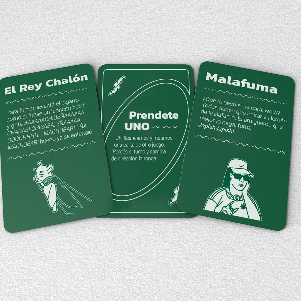 Es muy simple: cada carta tiene una consigna para que fume uno, todos o nadie. Por ejemplo: entrar en Fumodo Diablo, esconderse de un brownie loco o invocar el poder del Rayo Fumeta.