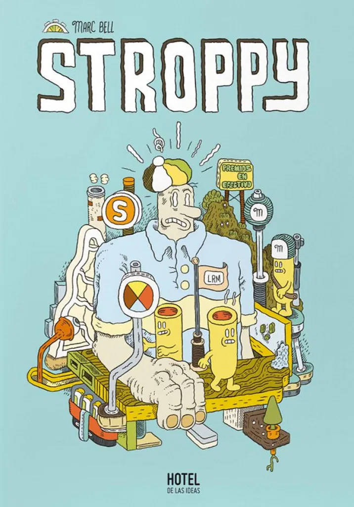 Stroppy es un individuo que trabaja en una línea de producción en una de las tantas fábricas de Monsieur Mostacho, un empresario inescrupuloso. Al convocarse un concurso musical con premios en efectivo, Stroppy, en una maniobra furtiva, inscribe una canción de su amigo, Clancy el poeta. Stroppy es una fantasía orquestada por Marc Bell que contiene artefactos imposibles, criaturas desacostumbradas, chistecillos estrambóticos y abismos de pasión. Fantasía post hippie, alegoría de la lucha de clases, Stroppy está narrado como un musical para sordomudos.