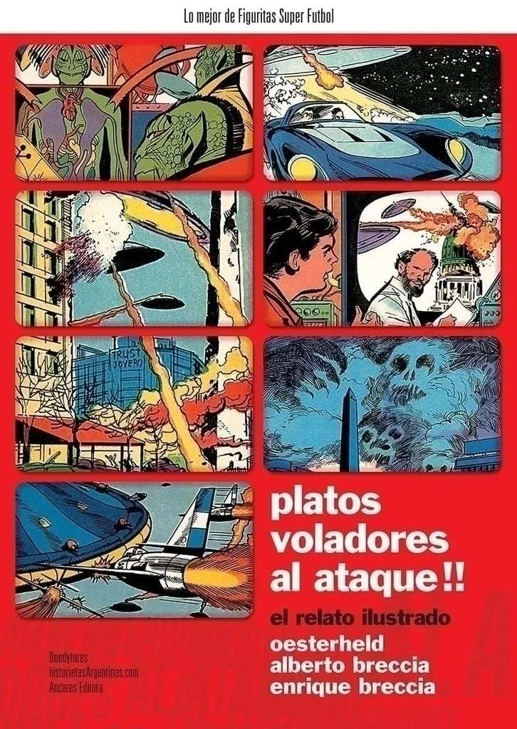 La legendaria colección de figuritas que narra la más estrafalaria invasión extraterrestres a nuestro planeta, llega por fin en un álbum único y completo, a todo color. Una creación de tres monstruos sagrados de nuestra historieta que hará las delicias de los amantes de los relatos ilustrados, de los coleccionistas y de los nostálgicos. Una edición imperdible