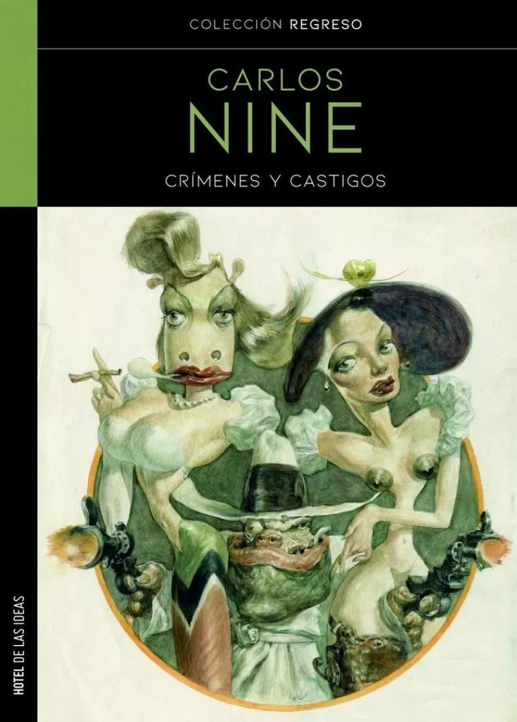 Con el espíritu de quien se divierte con sus juguetes favoritos, en Crímenes y castigos Nine saca a relucir su exquisito arsenal gráfico y le saca filo a la punta de su prosa para una relectura irrespetuosa y genial de los clichés del hard boiled. Por primera vez en libro en nuestro país, esta colección de breves historias nos demuestra que -con la guía de uno de los grandes maestros del dibujo argentino- recorrer los oscuros callejones del hampa será siempre un placer.